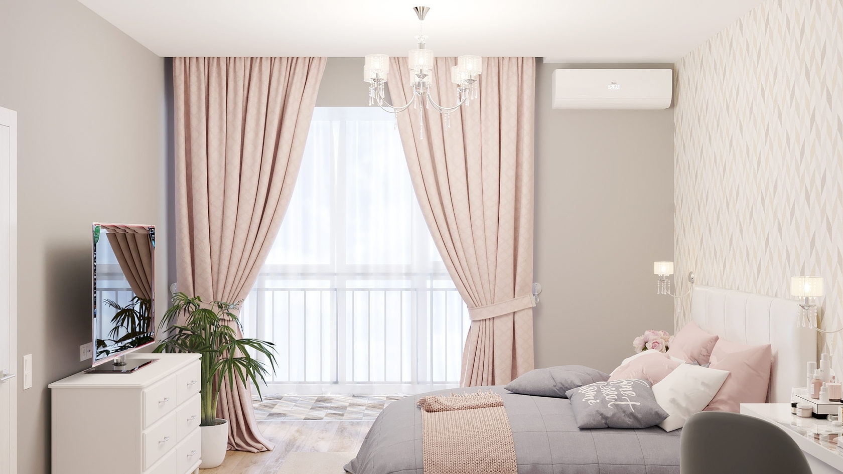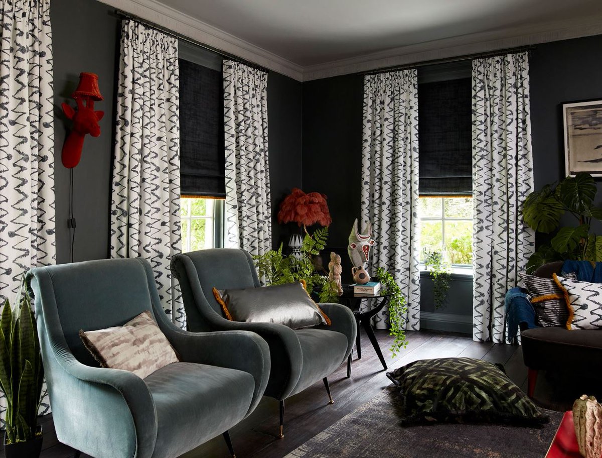 Если в дизайне серый оттенок представлен в виде полос или узора, а основной фон скорее белый, то стоит воспользоваться «скандинавским методом»: выбрать белые занавески.