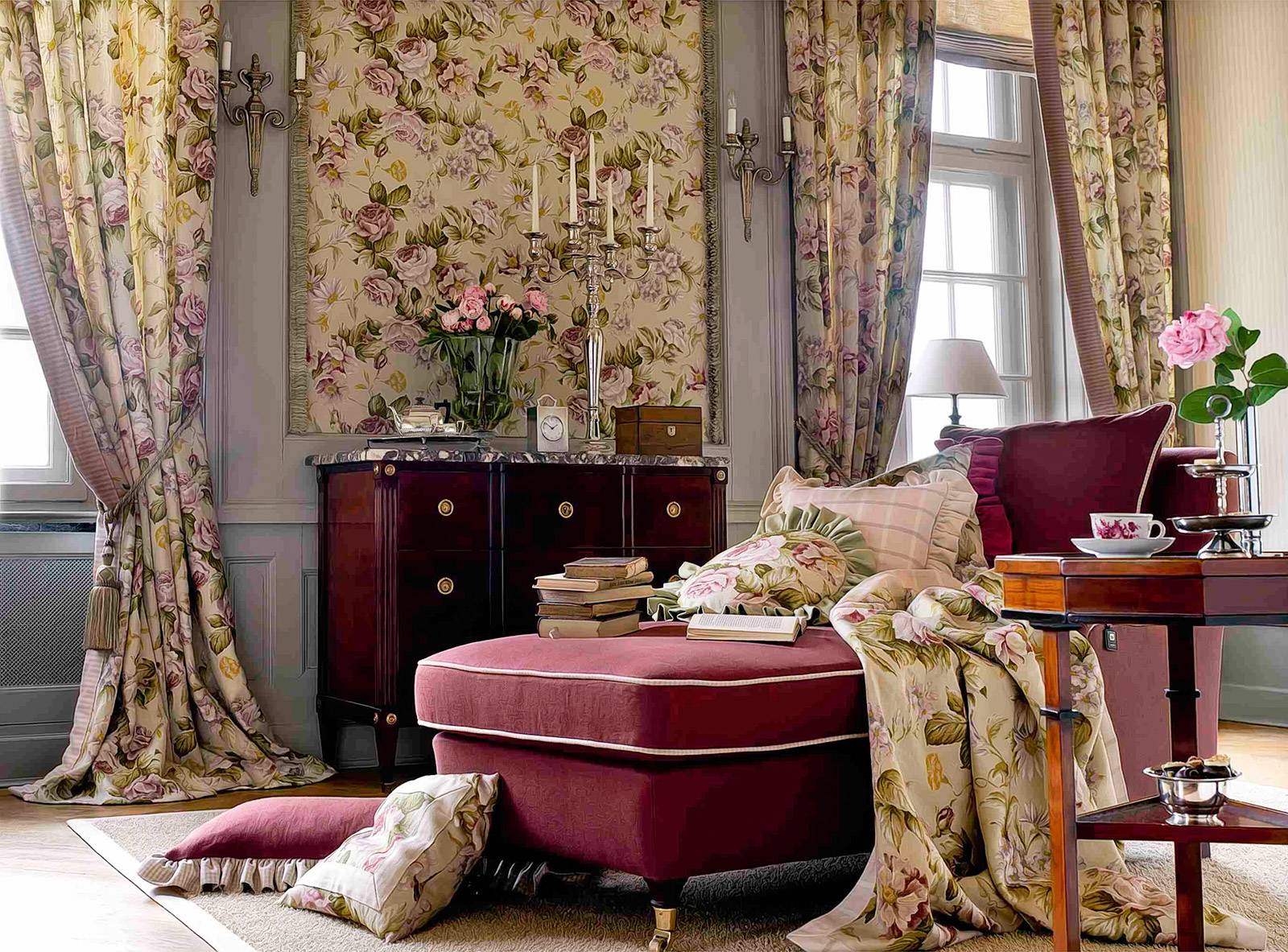 При использовании занавесок и мебельной отделки с рисунком рекомендуется следовать одному из следующих подходов: