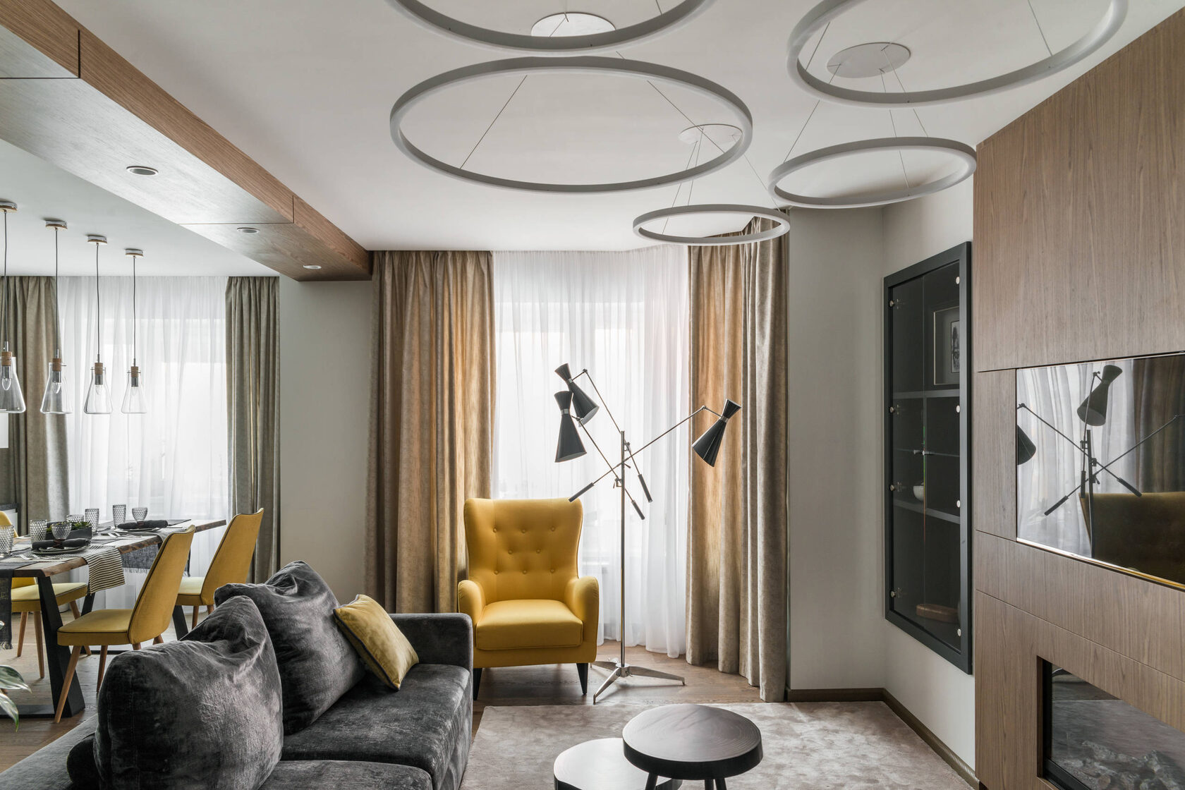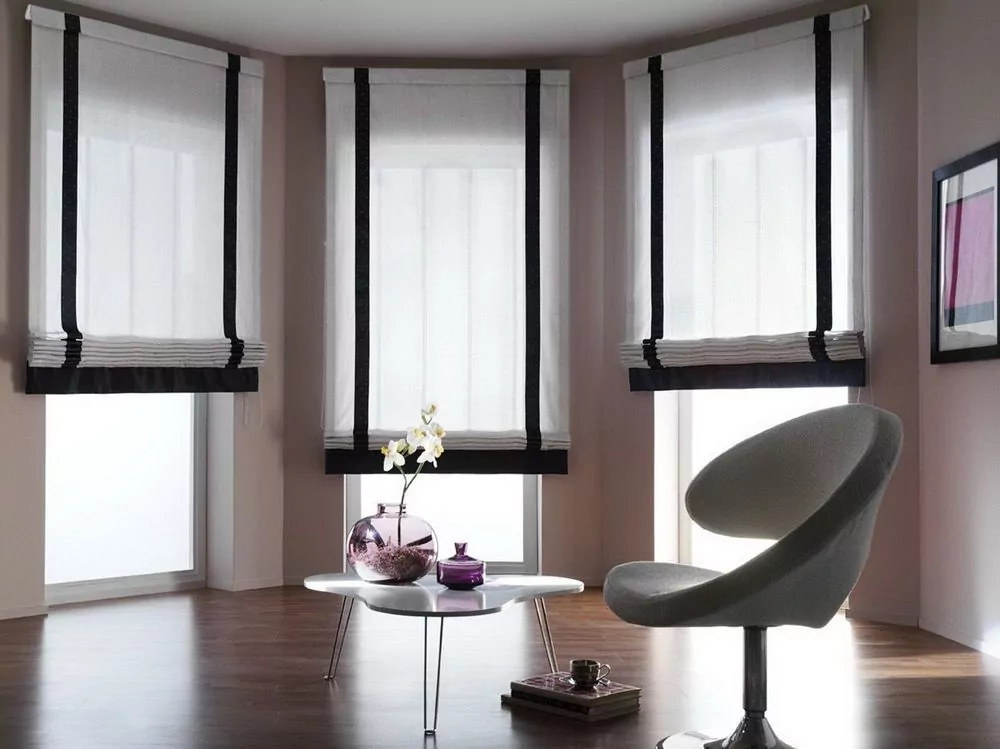 Другой вариант — повторение цвета отделки не в самой занавеске, а в элементах: подхваты или декоративная бахрома. Этот подход привлекателен в интерьерах с яркими акцентами: нейтральные занавески смягчают яркость цветов, а подхваты способствуют созданию гармоничной истории пространства.