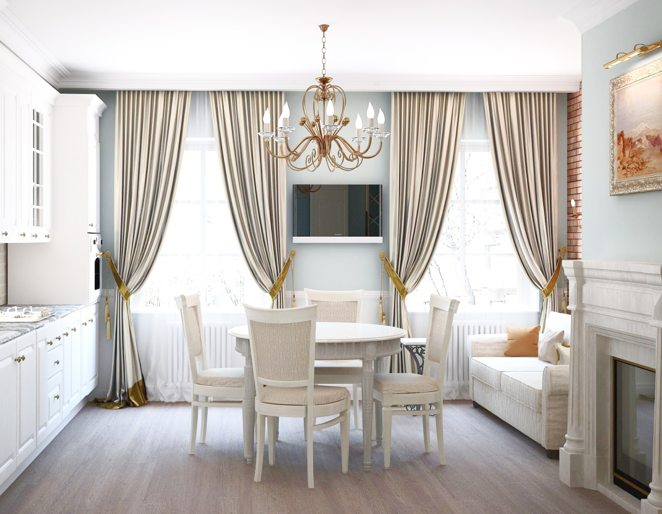 Пошив штор для кухни-гостиной в Домодедово